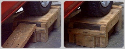 For other jobs, we drive the vehicle onto home made ramps, which are safer, plus extra working space than traditional metal ones.